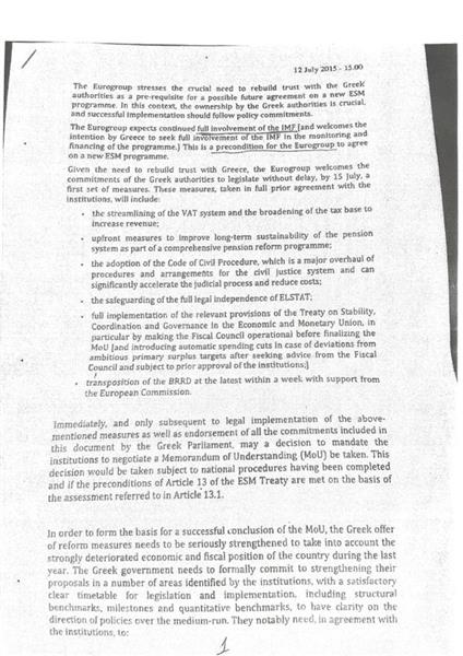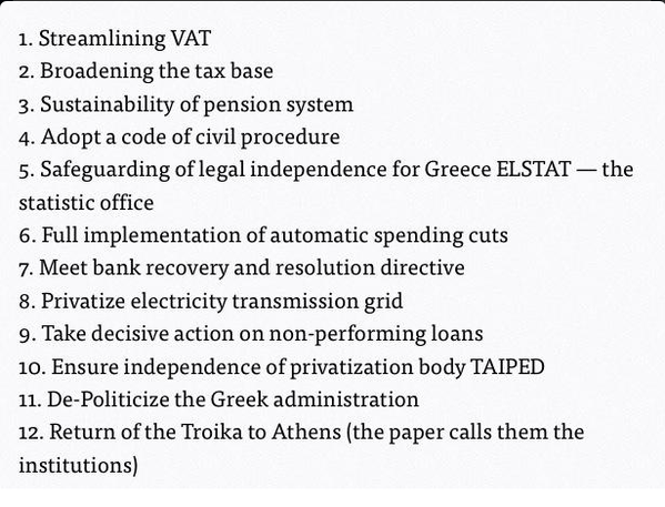 Enligt läckor från det grekiska parlamentet är det troligt att euro-gruppen bland annat kommer att kräva att det grekiska skattesystemet och socialförsäkringssystemet måste reformeras akut. Något som kan bli svårt för premiärminister Tsipras att driva igenom i sitt eget parti Syriza. Han kommer däremot troligvis få stöd av oppositionen. Den stora frågan här är därför om Tsipras kommer tvingas till en regeringingsombildning och hur den i sådana fall skulle se ut. Eller om han möjligtvis kommer att välja att avgå.
