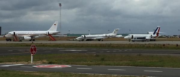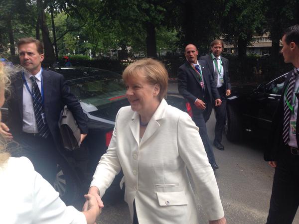 Tysklands förbundskansler Angela Merkel och Frankrikes president Francois Hollande har nu anlänt inför kvällens möte i Bryssel och flera journalister på plats twittrar: