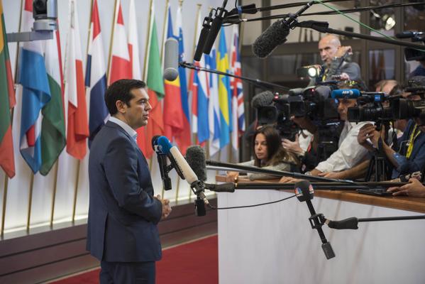 En av huvudpersonerna i dramat, Greklands premiärminister Alexis Tsipras, har just anlänt för kvällens EU-möte i Bryssel.