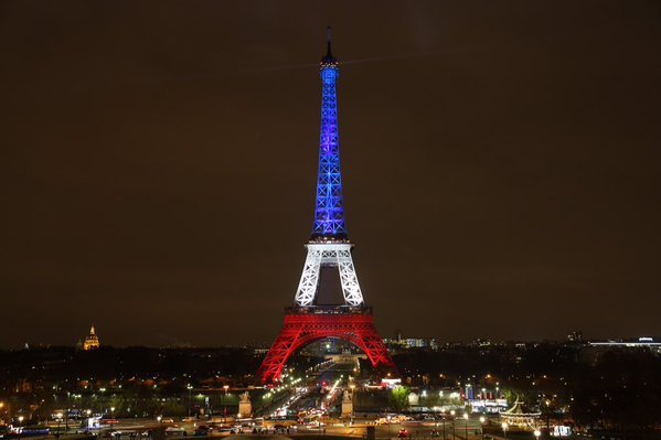 (Frihet, jämlikhet, brödraskap, jag är stolt att vara fransyska. Nej och åter nej vi kommer inte att vara rädda. Alla mina kondoleanser till offrens familjer.)
