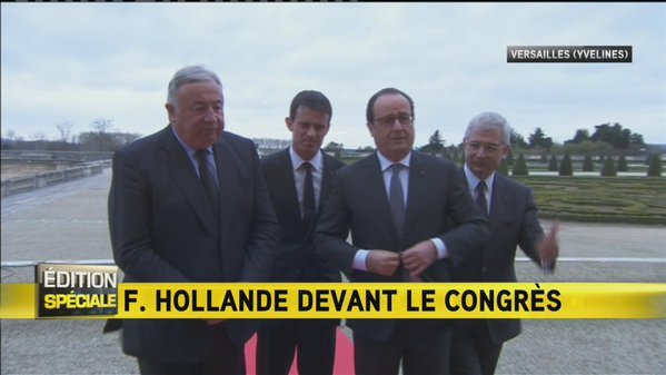 Frankrikes president François Hollande ska som sagt tala inför landets parlament kl 16 i dag. Sammanträdet äger rum i slottet i Versailles, en dryg mil utanför centrala Paris.