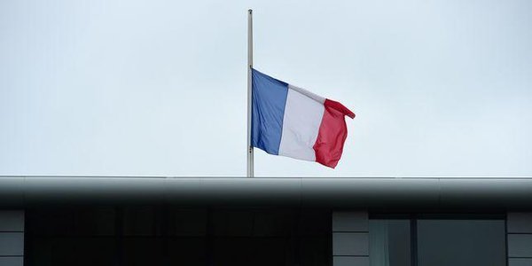 Flaggor på halvstång på slottet i Versailles för att markera den landssorgen som är inne på sin andra av tre dagar.