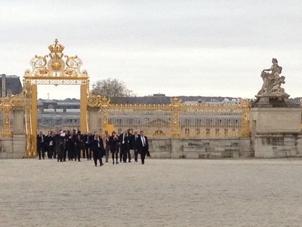 Smockfullt i pressalen i Versailles, som sällan är särskilt välbesökt, rapporterar le Mondes politiska reporter på plats.