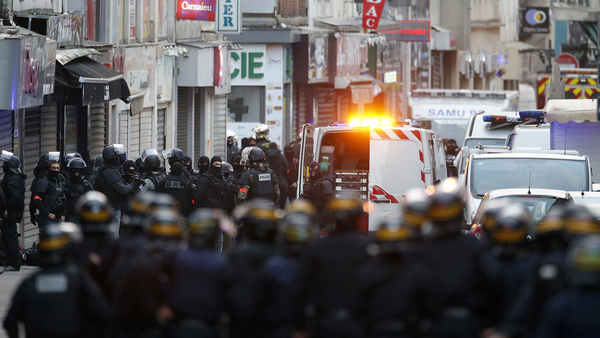 En man, som tros vara en av attentatsmännen, är fortfarande på flykt, bekräftar franska myndigheter.