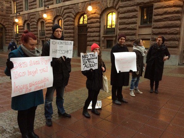 En stillsam demonstration utanför riksdagen där debatten om id-kontroller har börjat. #svpol @sr_ekot https://t.co/sAyDhzTjLT