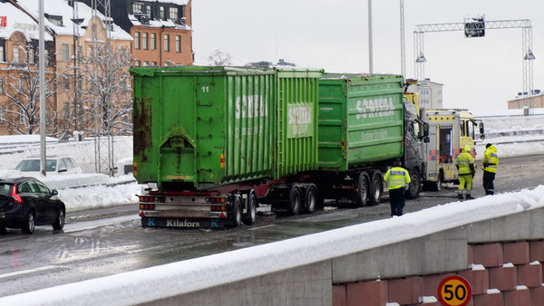 På grund av snöröjning stängs vägen av i södergående riktning mellan Norrtull och Kristineberg. Alternativa vägar är Klarastrandsleden samt St:Eriksgatan. Trafiken leds på Essingeleden vid Hornsberg. Farligt gods får ej trafikera innerstaden. Essingeleden beräknas öppna tidigast kl 17:00. Det kommer därefter att vara begränsad framkomlighet då endast ett av fyra körfält är öppet för trafik.