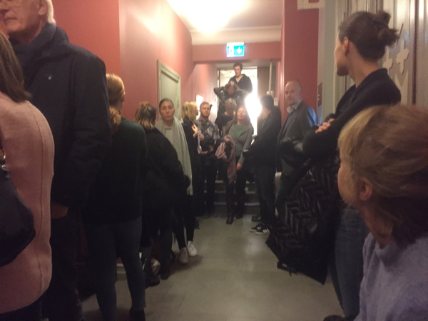 Nu släpps åhörare in i salen. Alla får inte plats. En angränsande sal öppnas där de kan lyssna på rättegången.