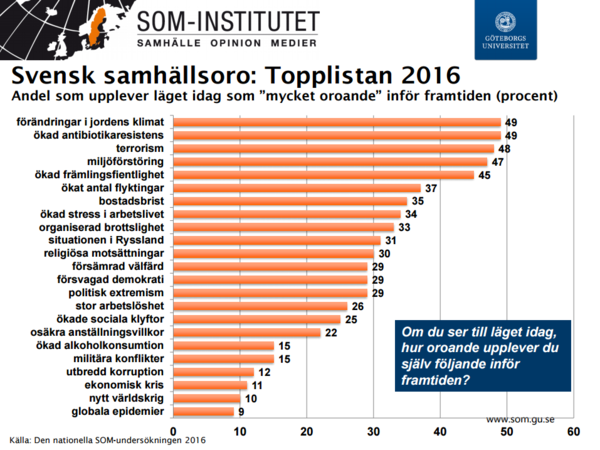 Terrorism är en av de områden där svenska folket blivit mer oroade under de senaste två-tre åren.