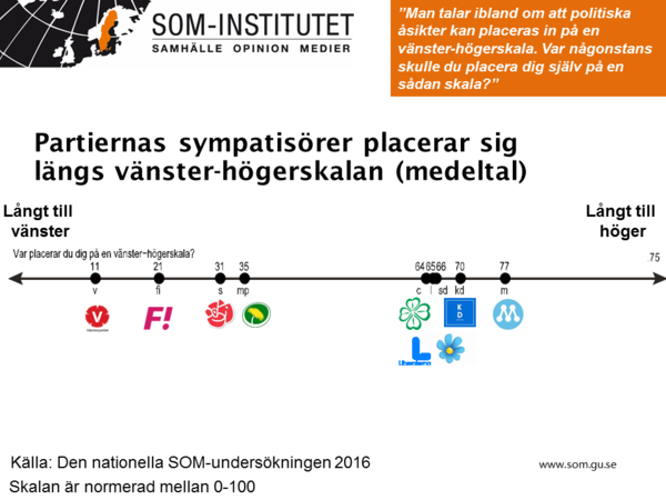 Centerpartiets sympatisörer har starkare antipatier för Sverigedemokraterna än för t ex Vänsterpartiet och Feministiskt initiativ, enligt SOM-undersökningen 2016.