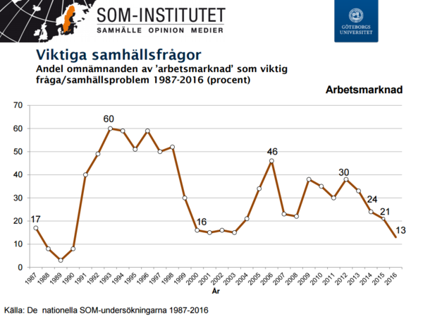 Lag och ordning klättrar på svenska folkets dagordning. Från 5 till 12 procent mellan 2015 och 2016, enligt den senaste SOM-undersökningen.