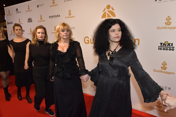SVT NyheterRedan från start märktes att årets upplaga av Guldbaggen kommer handla lika mycket om metoo som om det gångna filmåret. Strax efter att portarna slagits upp till galan tågade en svartklädd procession nedför röda mattan under tystnad.Skådespelaren Claes Bang från The Square är en av gästerna på röda mattan.