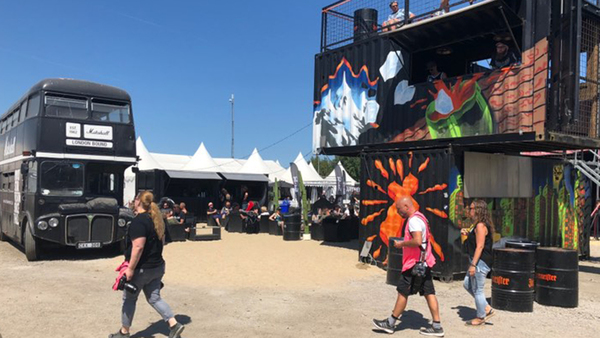 Bild på festivalens so kallade backstage/VIP-område. Långt ifrån så glamoröst.som det låter. Består till största delen av presstält, några matbodar och en stor bar. Plus ett torn där man har utsikt över Festival stage.