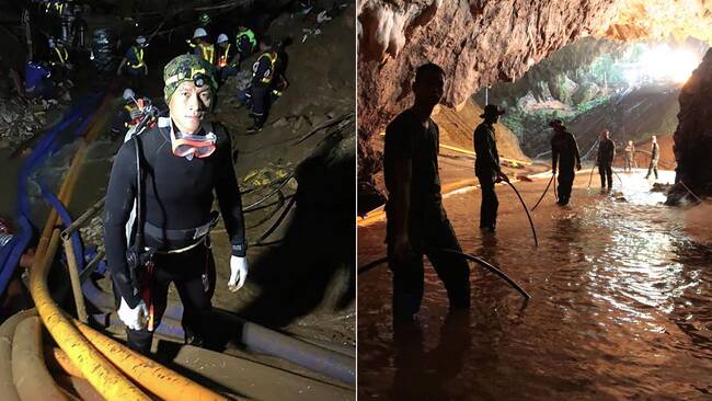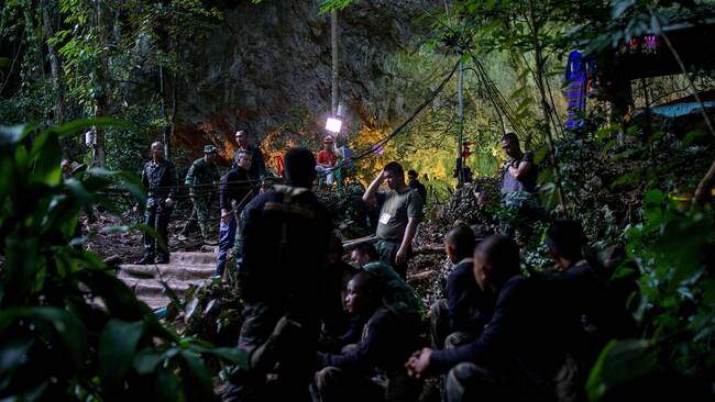- Tre elitsoldater och en läkare tog sig ut ur grottan senare under eftermiddagen, svensk tid.