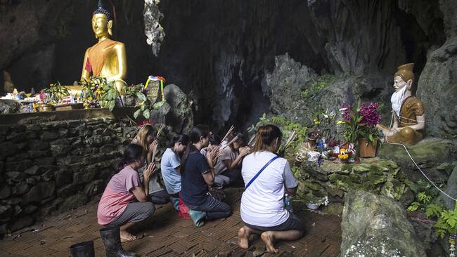• Räddningsinsatsen är inne på sin tredje dag och utöver pojkarna och tränaren, finns också personal från räddningsinsatsen inne i grottan. Man hoppas på att få ut samtliga under tisdagen.
