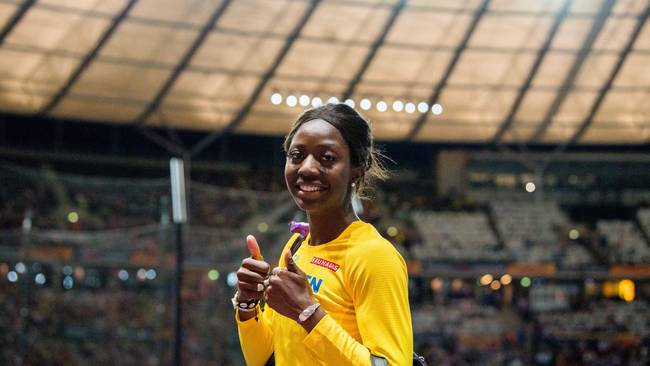 Erika Kinsey tar 1,88 med luft och är felfri. Det kan räcka långt.