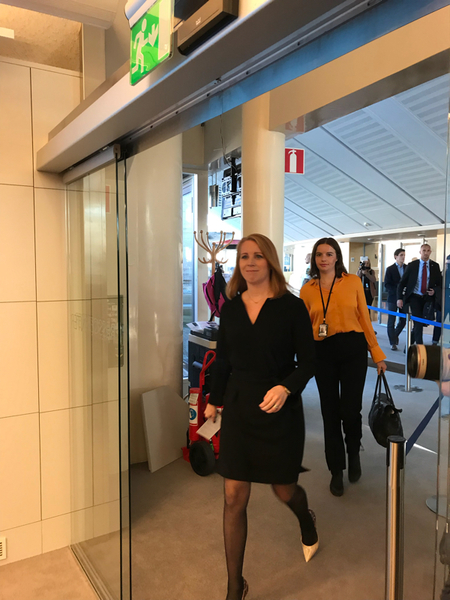 Annie Lööf (C) på väg in nu säger hennes pressekreterare.