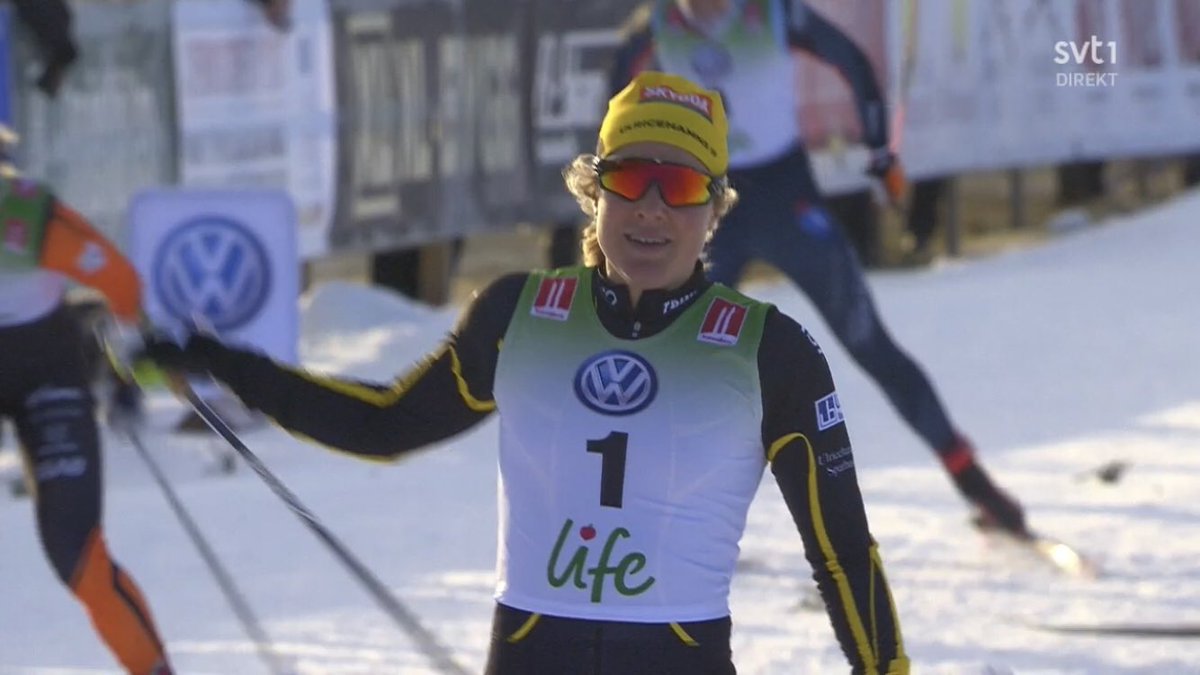 Hanna Falk fullständigt krossar de andra och vinner sprinten i Bruksvallarna överlägset 🏆. .. kul med unga Moa Lundgren som också imponerar #twittski #vinterstudion