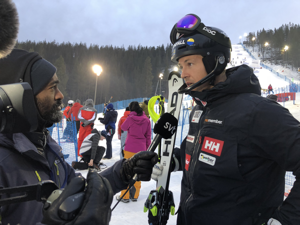Fjäll och Hellman dividerar om vem som tar hem slalomen. Hellman: Jag tror Marcel tar hem det.