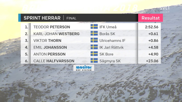 Kalla snabbast vid första passeringen – 3,2 sek före Ebba Andersson.