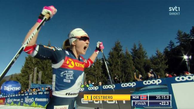EXTRA: Johannes Hösflot Kläbo fullbordar norsk seger även på herrsidan. Segertiden blir 32.51,3.