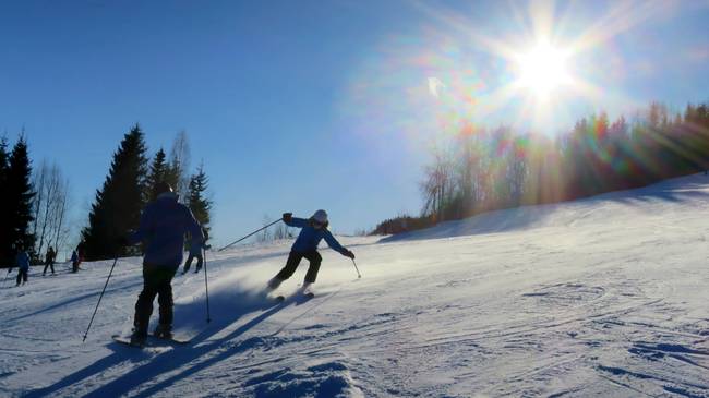 Lär ditt barn att svänga och stanna i barnbacken innan du släpar upp dom i stora backen!