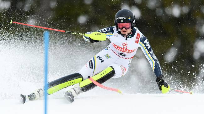 Anna Swenn-Larsson in som tvåa. 58 hundradelar efter Shiffrin.