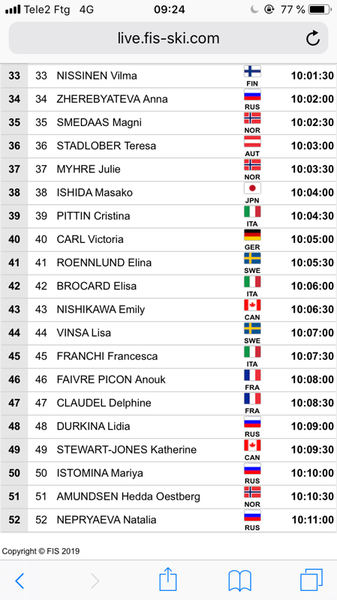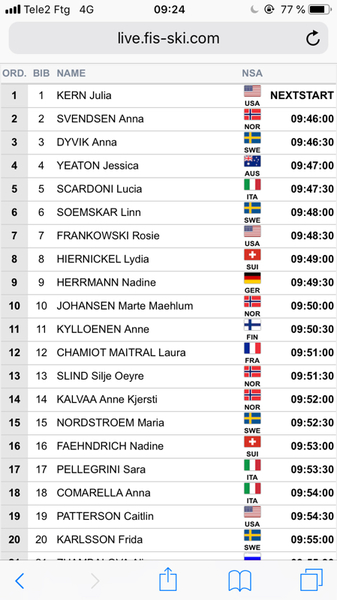 Direkt inhämtade med skärmavbildning! Där har ni startlistan. Mest ser vi fram emot startnr 20, kl 9.55.