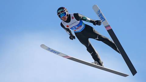 Ryoyu Kobayashi med ett stabilt hopp som lär räcka till ett brons för Japan.