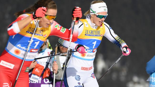 SVT SportMaja Dahlqvist såg till att Sverige tog sitt första VM-guld i Seefeld då hon avgjorde sprintstafetten på sista sträckan. Nu hyllar skidlegendaren Gunde Svan henne i Vinterstudion i Seefeld. – Jag är väldigt imponerad över att just hon reser sig. Hon kunde lika väl ha grävt ner sig, säger Svan och syftar på Dahlqvists tårar efter att ha fallit i den individuella sprintfinalen.Den så stolta backhoppningsnationen Finland tog sig inte ens till andra rundan.