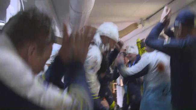 Efter VM-guldet firade vallabussen friskt till ”Gangnam style” 🕺🏻 #vinterstudion #vmvinter #twittski