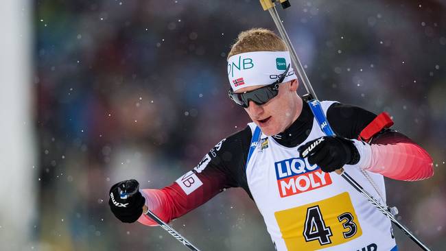Christiansen korsar mållinjen som etta. Och Norge inleder skidskytte-VM som de avslutade skid-VM: Med guld.