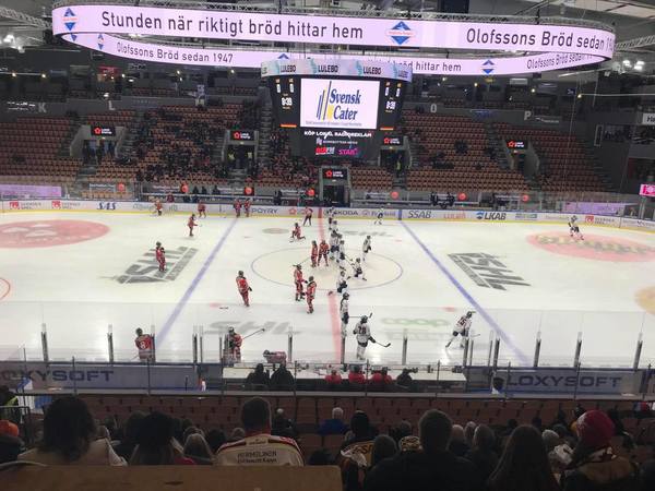 Såhär ser det alltså ut här i Luleå just nu. Publiken börjar sakta men säkert rulla in. Får se hur mycket åskådare det blir. 25 minuter kvar tills nedsläpp!