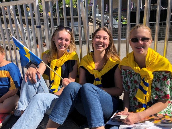 Wilma Ruf, 17 år, Ebba Wellergård, 17 år och Alice Andersson 17 år har väntar på spelarna sen kl 15.