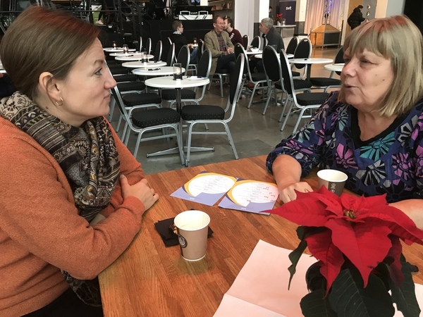 - Vi har pratat mycket om feminism. Jag är från Ryssland där jag inte tycker att det är så bra jämfört med Sverige. Medan Margareta som är från Sverige tycker att det kan bli ännu bättre här, säger Anastasia Boltwood som samtalar med Margareta Johansson i Malmö.