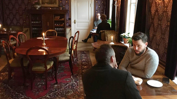 Intensiva diskussioner i Villa de Luxe i Växjö. Foto: Tomas LundströmSVT Nyheter Västs reporter Shohreh Zare på plats i Göteborg.