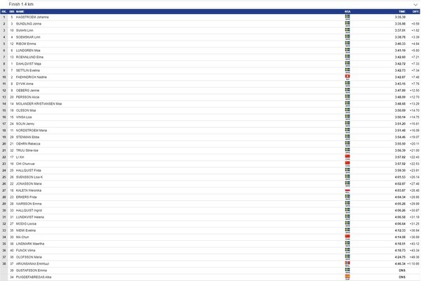 Dagens resultat från damernas sprintkval.Gick KJW vidare i sprintkvalet?
