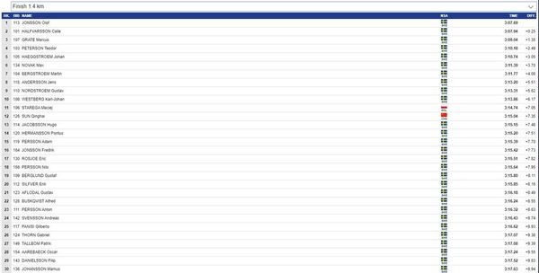 Dagens resultat från herrarnas sprintkval.
