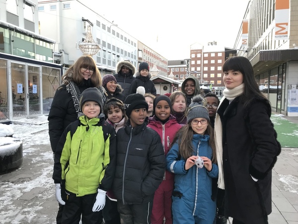 Även Storängsskolans klass 3B är på plats och just nu dansar de loss utanför buren.