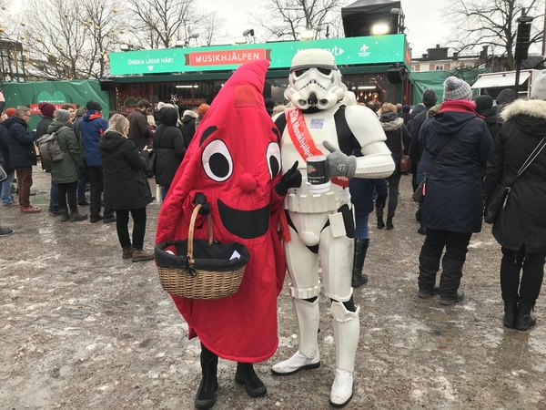 Stormtroopern har hittat en kompis från Blodbussen.Här var det drag! Varje morgon mellan klockan 7 och 8 samlas tanter och dansar på Stora torget för att samla in pengar till Musikhjälpen och temat Sex är inte ett vapen.