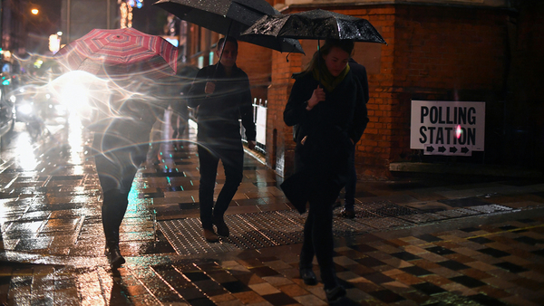Många britter trotsar regnet för att lägga sin röst. Foto: DYLAN MARTINEZ/REUTERS/TT