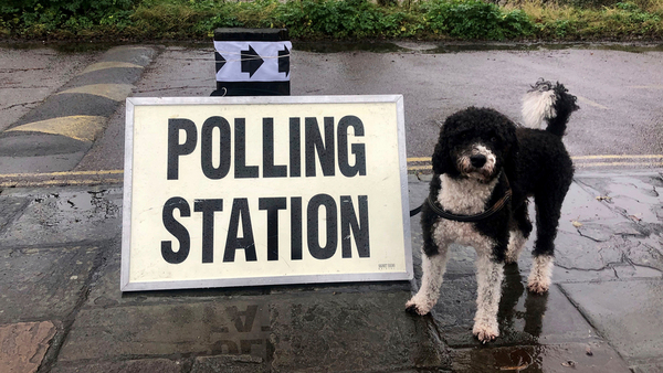 Labradoodlen Henry är en av dem som väntat på sin röstande matte eller husse.Foto: Claire Hayhurst/AP/TT