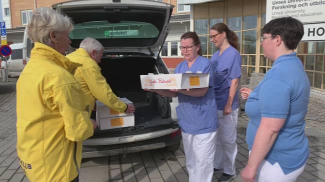 SVT NyheterLions i Luleå delade under onsdagen ut smörgåstårtor till vård och larmpersonal. Både ambulansen och sjukhuset i Sunderbyn fick besök. Smörgåstårtorna ges i klubbens arbete mot coronapandemin.Hemtjänstpersonal i Kiruna jobbade utan skyddsutrustning med covid-19 smittad