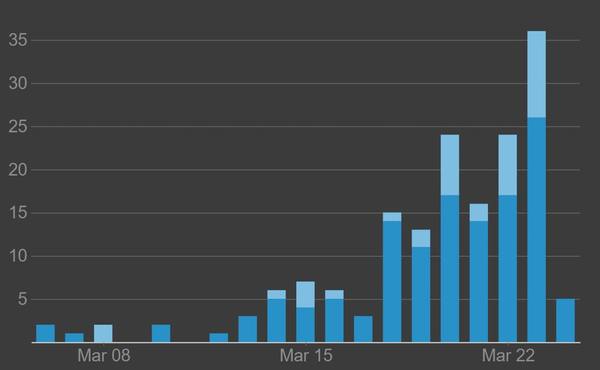 • Region Norrbotten kunde 20 mars bekräfta att det finns samhällssmitta i länet, det vill säga att smittan sprids mellan invånare.