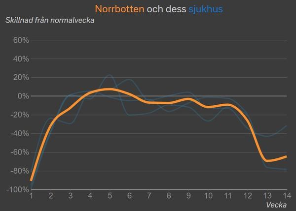 De planerade operationerna på sjukhusen i Norrbotten minskade med 65 procent i coronapandemins spår. Det visar en sammanställning gjord av SVT. Se mer här: https://www.svt.se/datajournalistik/corona-uteblivna-operationer/
