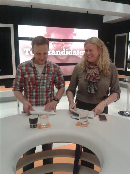@CamillaKvartoft och @jeanettlarsson i intensivt manusarbete inför kvällens #Toppkandidaterna m @Ladaktusson . pic.twitter.com/xsglqG2p3M